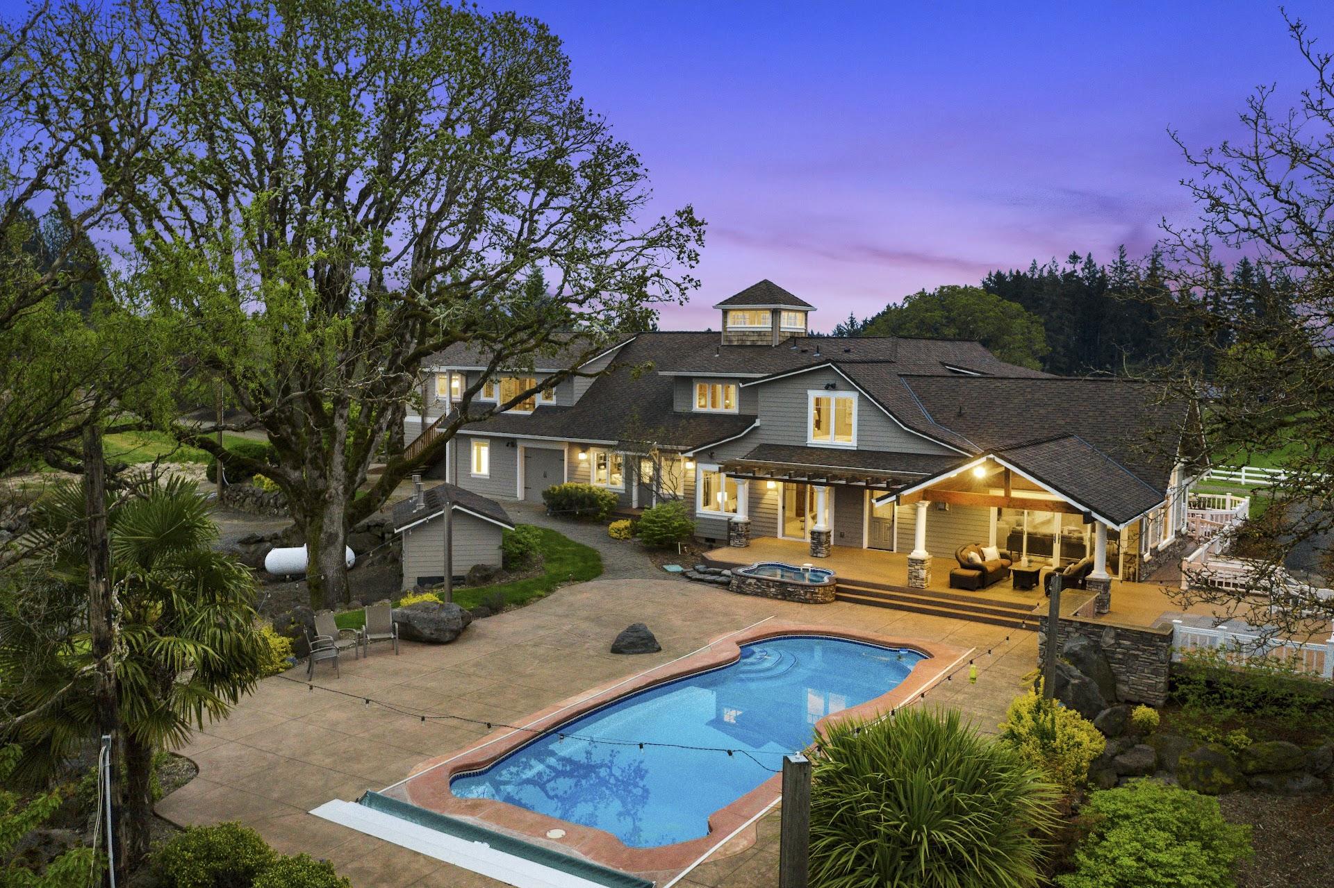 Be one of the first to enjoy this unparalleled experience.  Tucked away within the northwest hills of Helvetia, barely 15 miles from downtown Portland, this 5,300+ square foot farmhouse features panoramic provincial and regional views from almost any window.